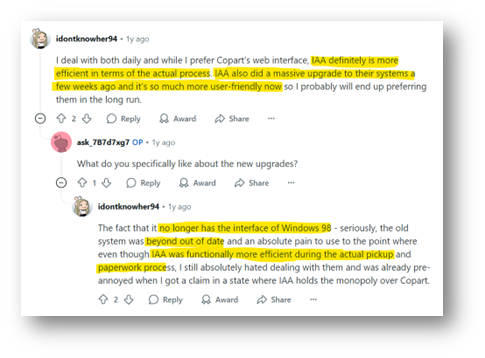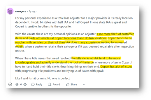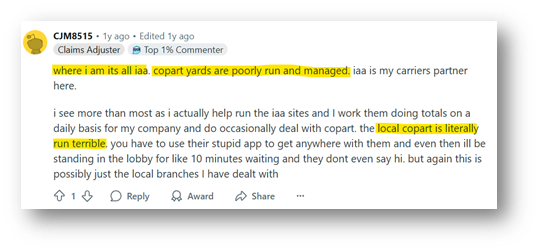 As a basic check, see below as well for a few Reddit reviews speaking about how IAA has really upped their game recently: