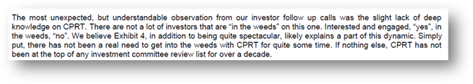 As a fact check, a Tegus interview earlier this year with a Former CPRT Executive wasn’t too surprised to hear of the above accusations: