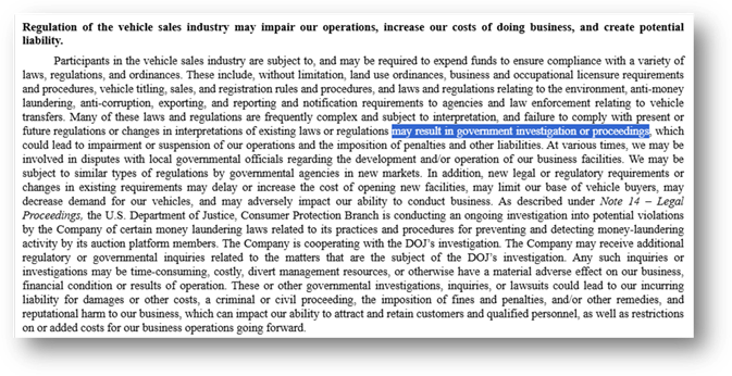 To tie up this section, while not seemingly material, one also has to consider the changes in the risk-disclosure regarding regulation of the vehicle sales industry – see below for the risk-disclosure in the FY2024 10-K: