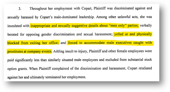 On April 9th, 2025, the former Global Head of Human Relations at CPRT filed a lawsuit, titled “Christine Arnold vs. Copart, Inc”. All of the documents on the docket are publicly available here.
